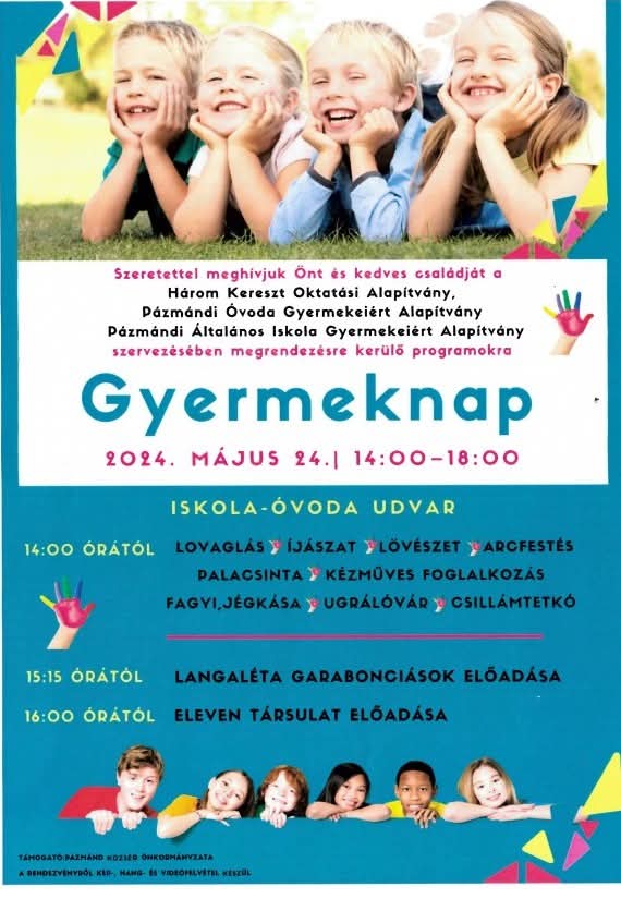 Alapítványunk aktívan részt vett a 2024. május 14-én megrendezésre kerülő gyermeknap szervezésében és lebonyolításában. Köszönjük szépen a szülők által felajánlott étel-ital támogatásokat, amellyel hozzájárultak ahhoz, hogy a program emlékezetes legyen a gyermekek számára.