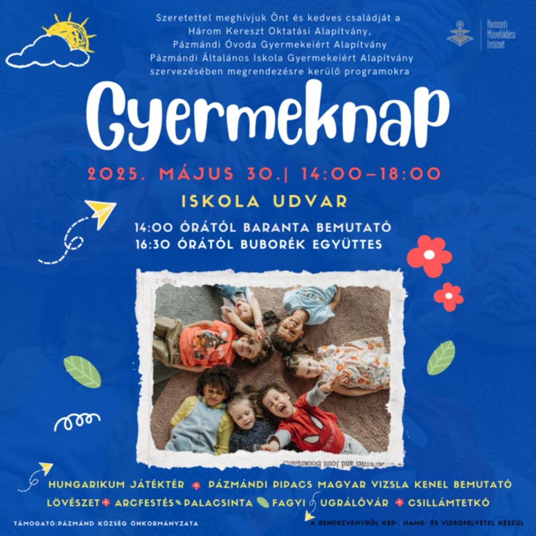 Játssz a tanárokkal, nevess a családdal, és érezd jól magad velünk! A rendezvényt a Három Kereszt Oktatási Alapítvány, a Veniker, a Hegyalja Vendéglő és Pázmánd Község Önkormányzata támogatja.
